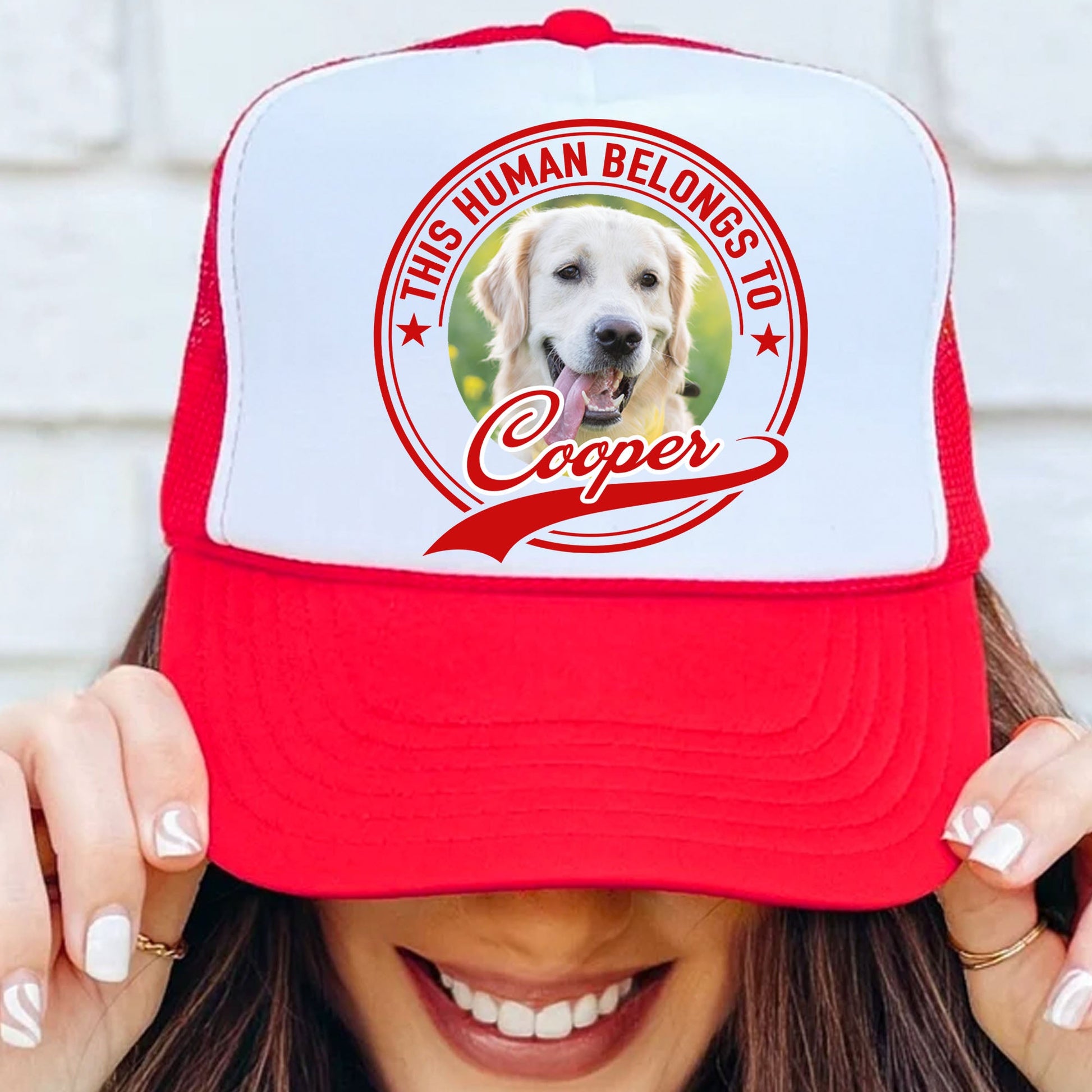 Human Belongs To Dog Cat | Personalized Custom Photo Dog Cat Pet Cap | Trucker Cap Hat C993